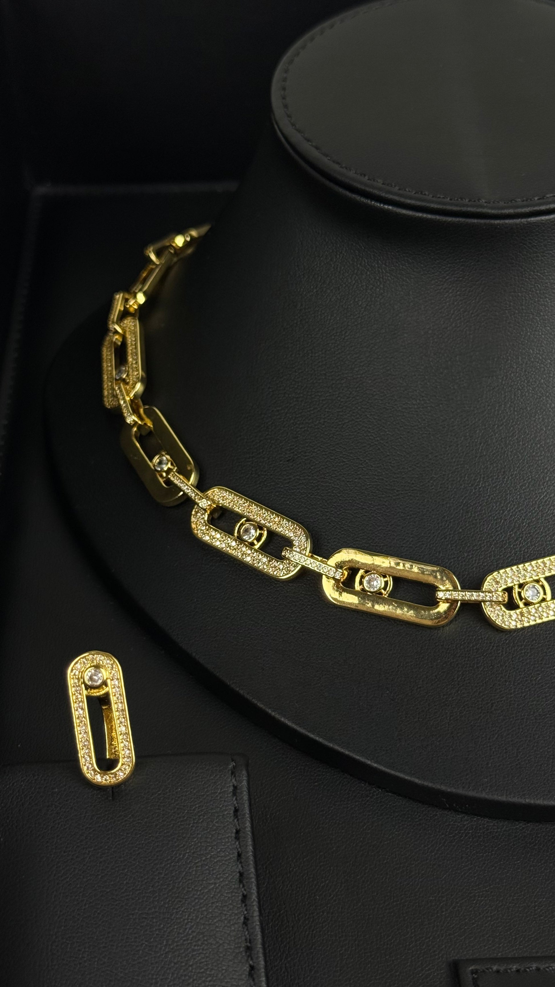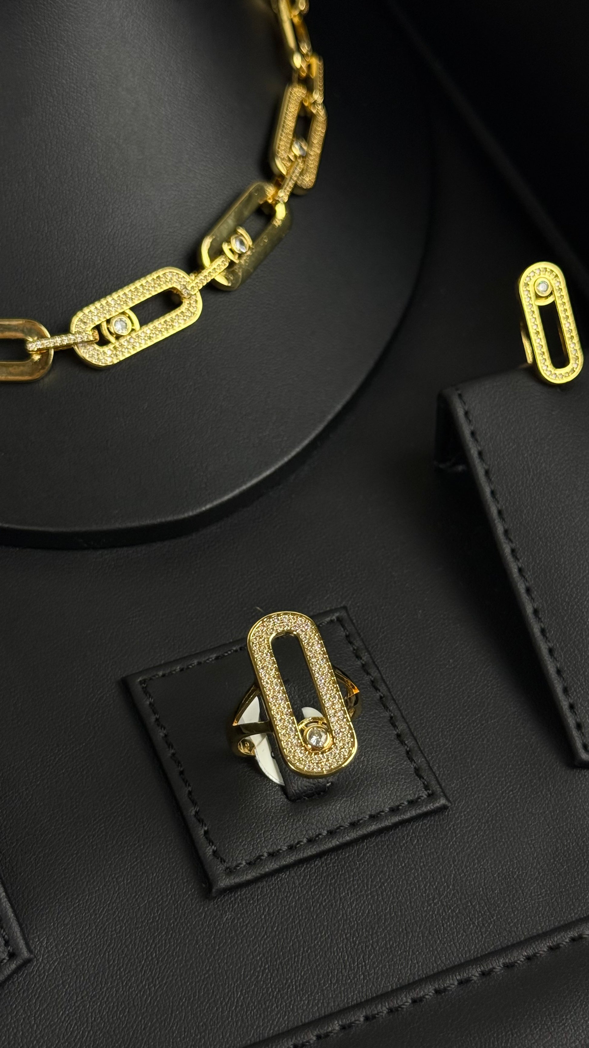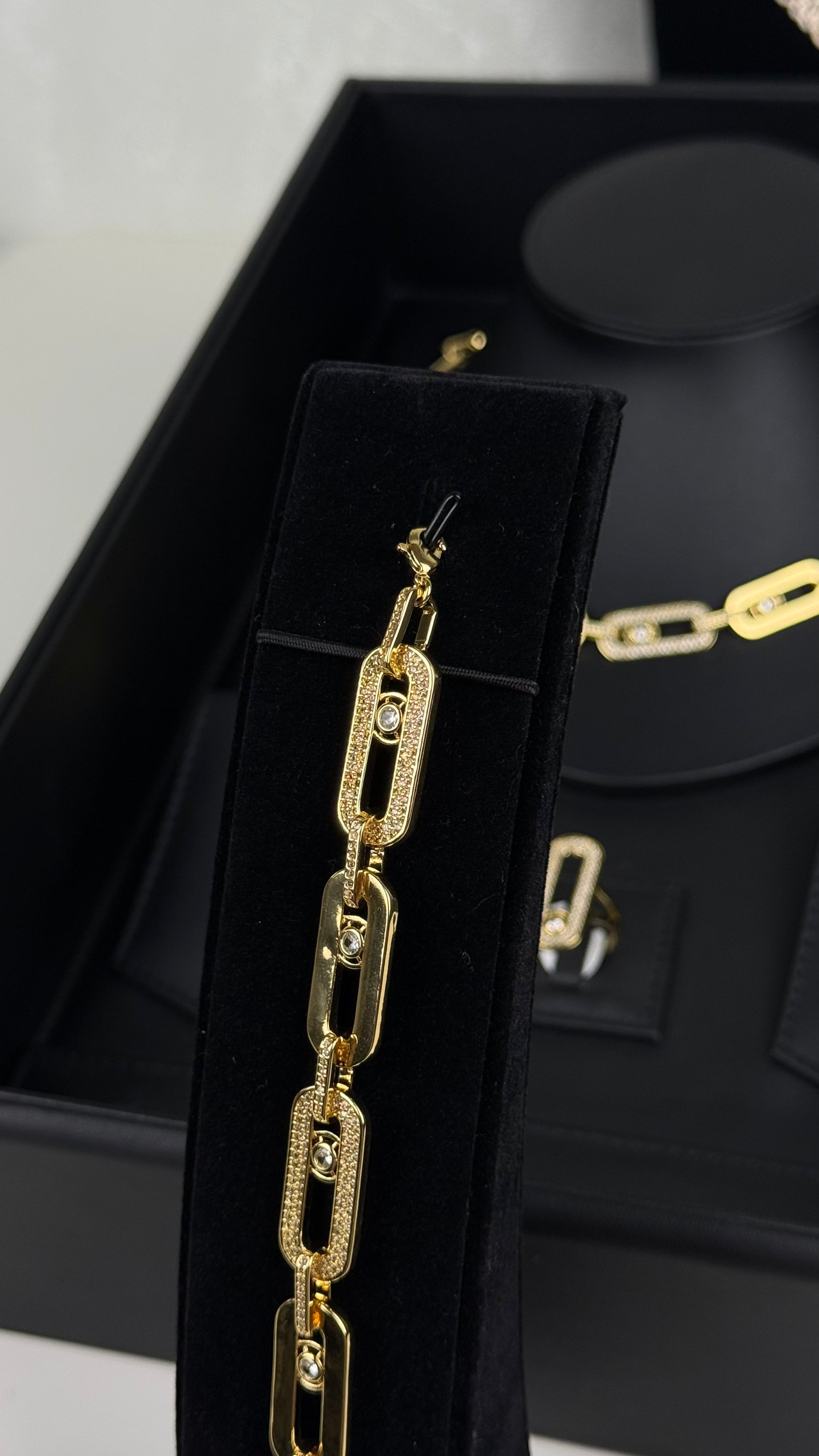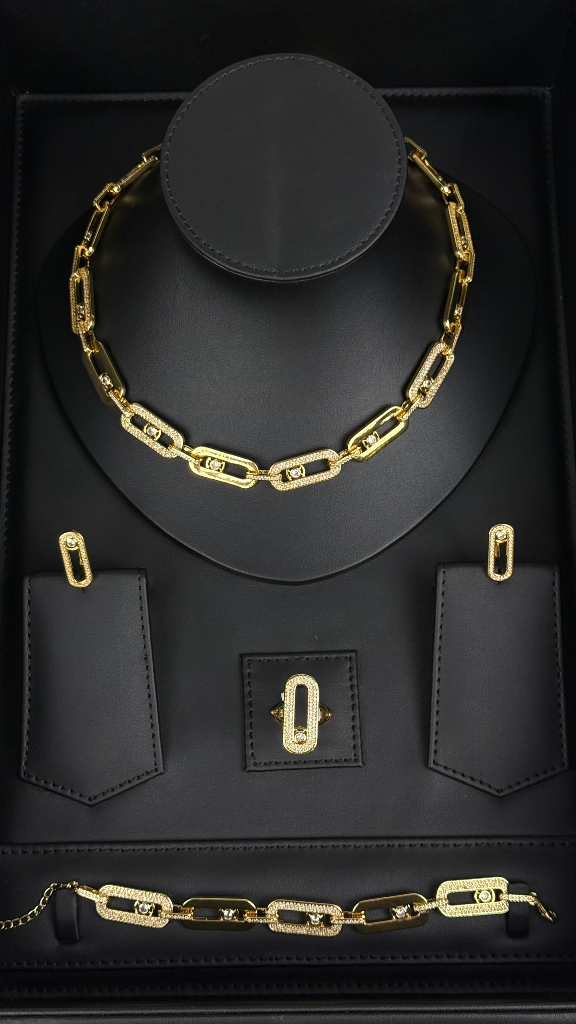 Ava is crafted for the woman who leads with strength and style. Featuring bold geometric links adorned with shimmering stones, this modern set captures attention effortlessly. Wear it to elevate your everyday or add a fierce touch to your evening looks.