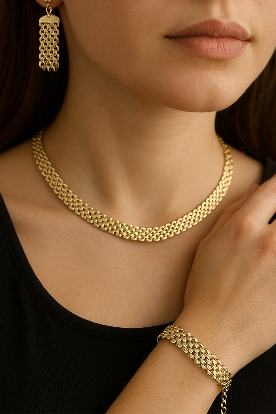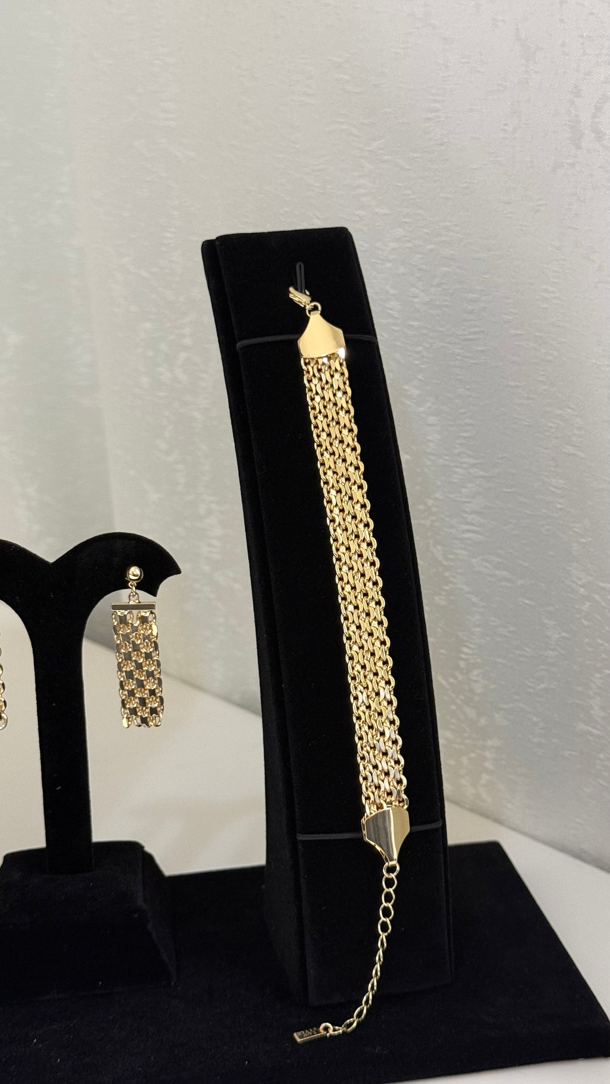 Introducing our Golden Mirage Jewelry Set, a stunning ensemble that exudes elegance and sophistication. Crafted with high-quality materials and adorned with a lustrous gold-plated finish, this set offers the luxurious appeal of solid gold without the hefty price tag.