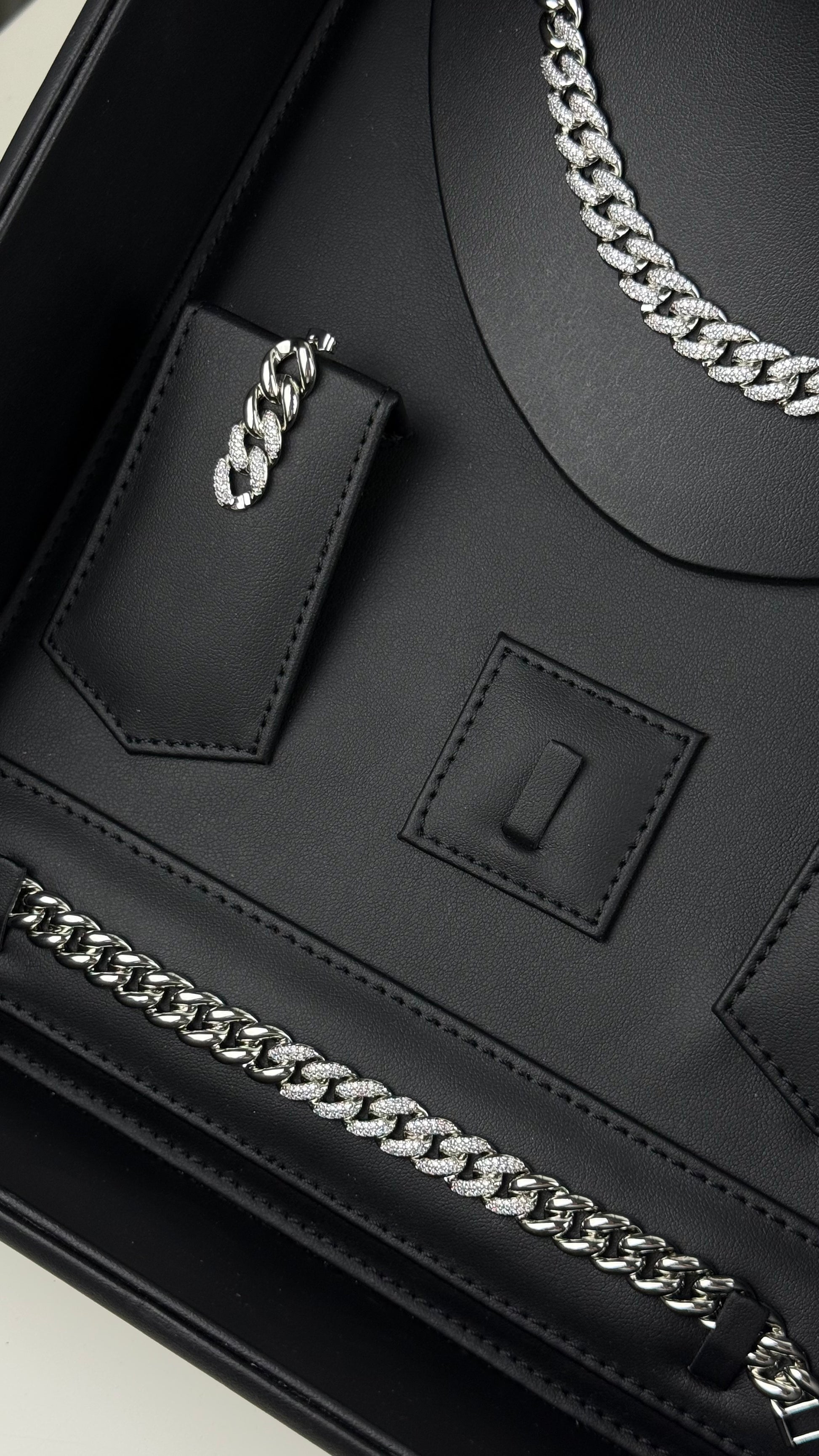 Introducing the Luna Links Jewelry Set, a captivating ensemble that embodies modern elegance and timeless sophistication. Crafted with high-quality materials and adorned with a radiant silver-plated finish, this set offers the luxurious allure of sterling silver without the premium price tag.